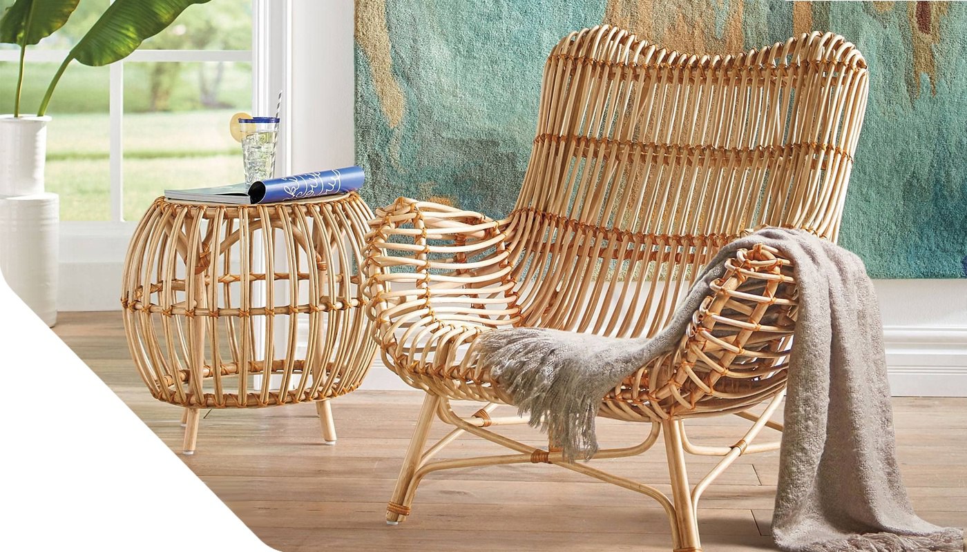 Натуральный ротанг — один из самых популярных материалов для эко-мебели. Он прекрасно смотрится в интерьерах в стиле бохо или эко-минимализм.