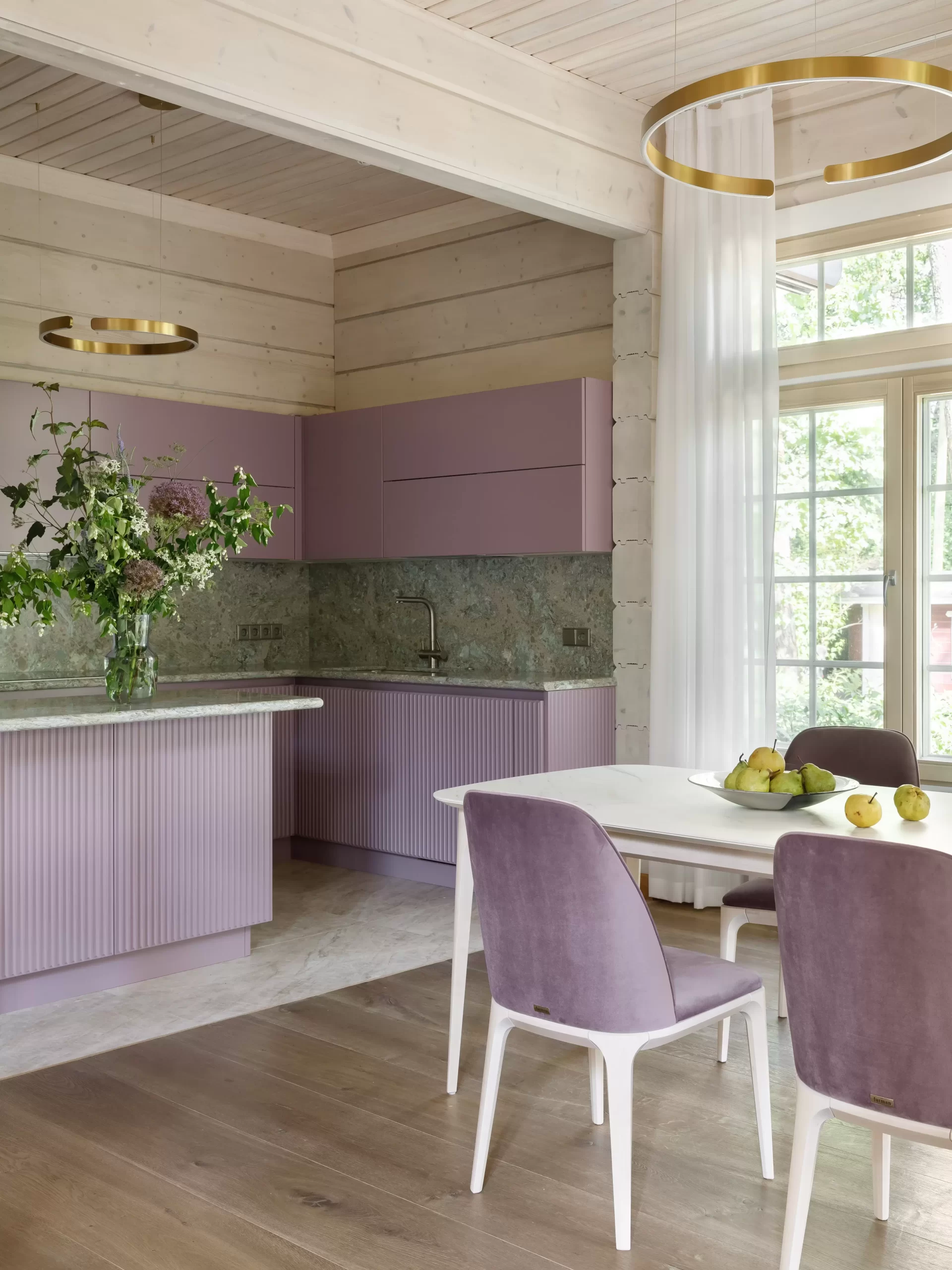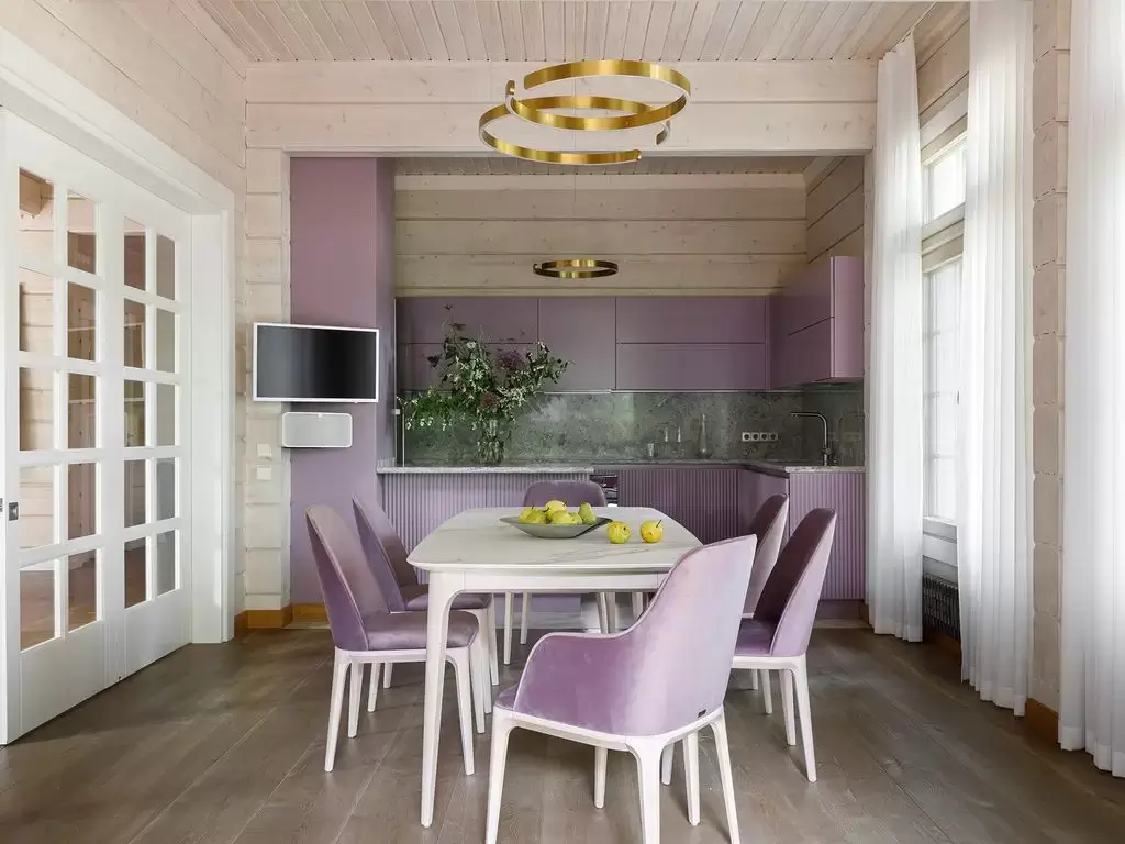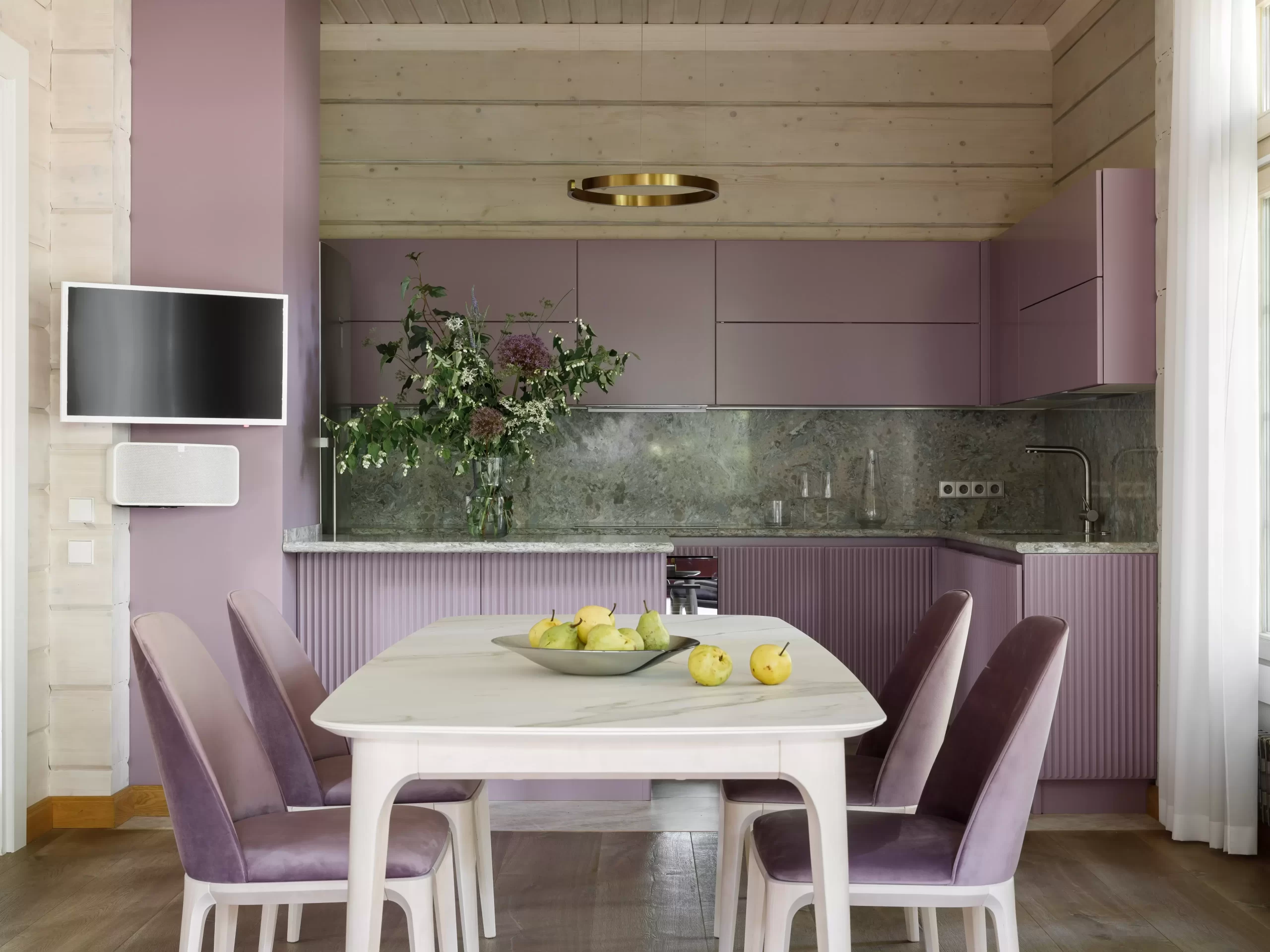 Обеденная зона комплектована столом и стульями из коллекции Play.