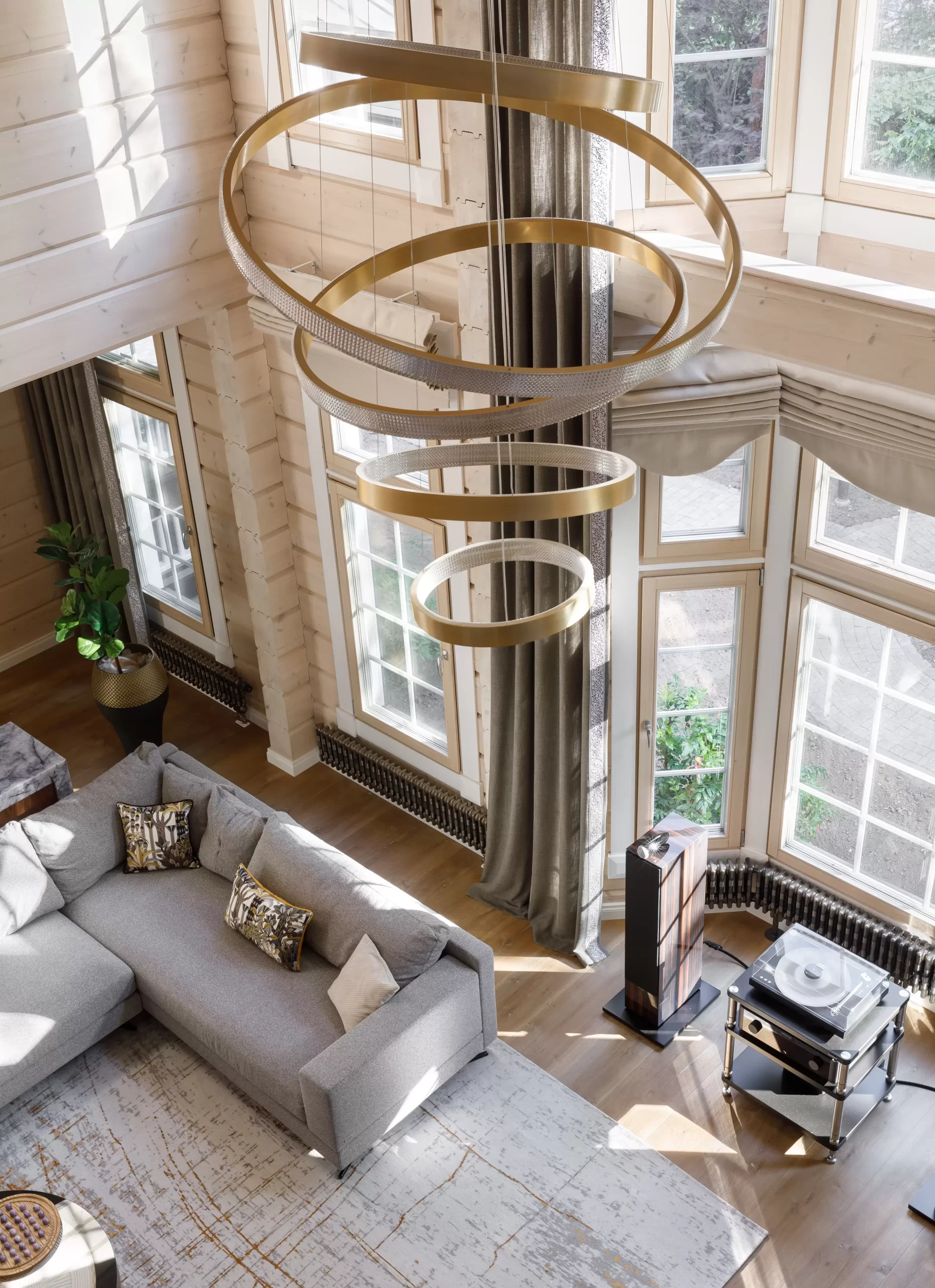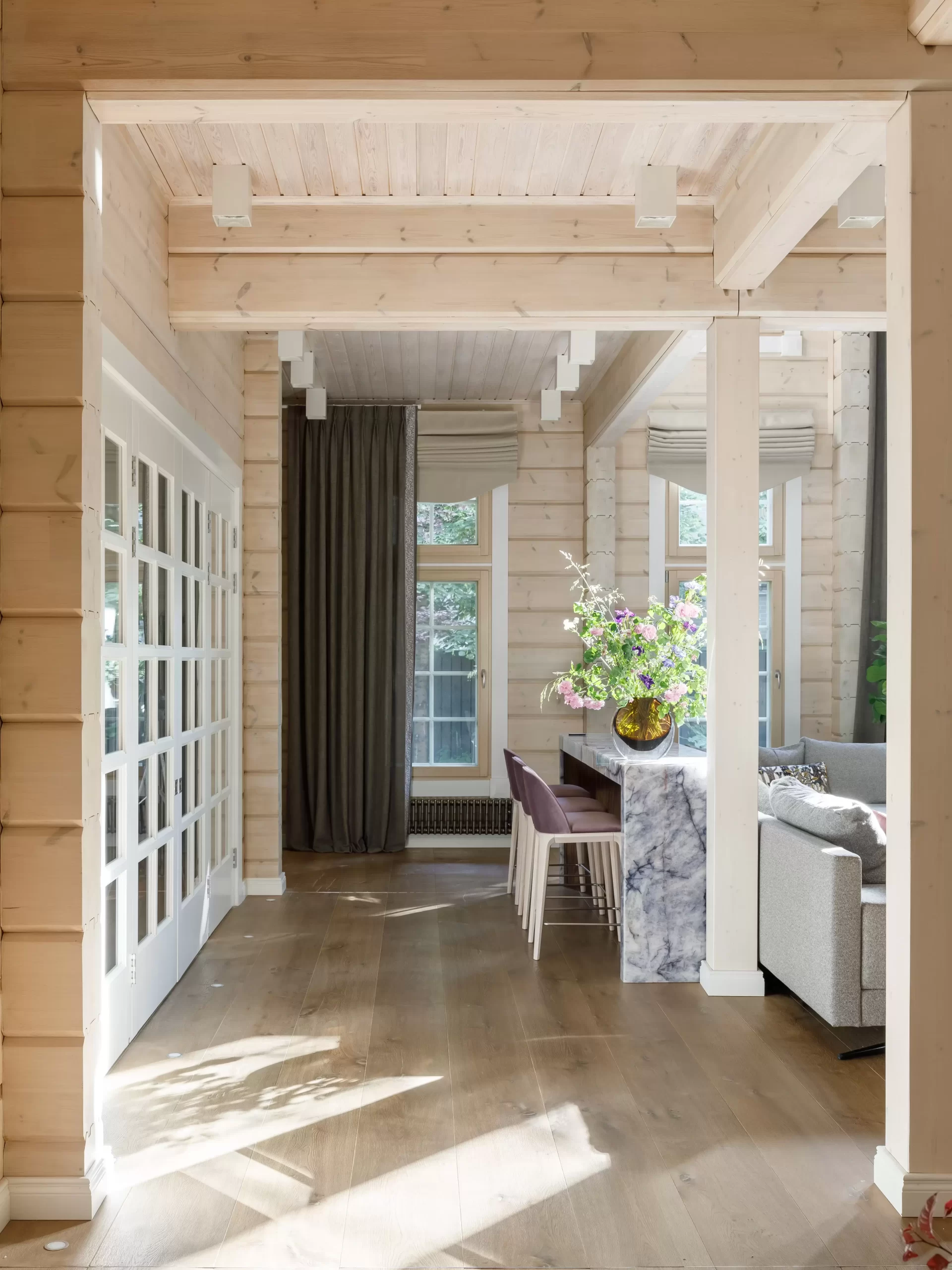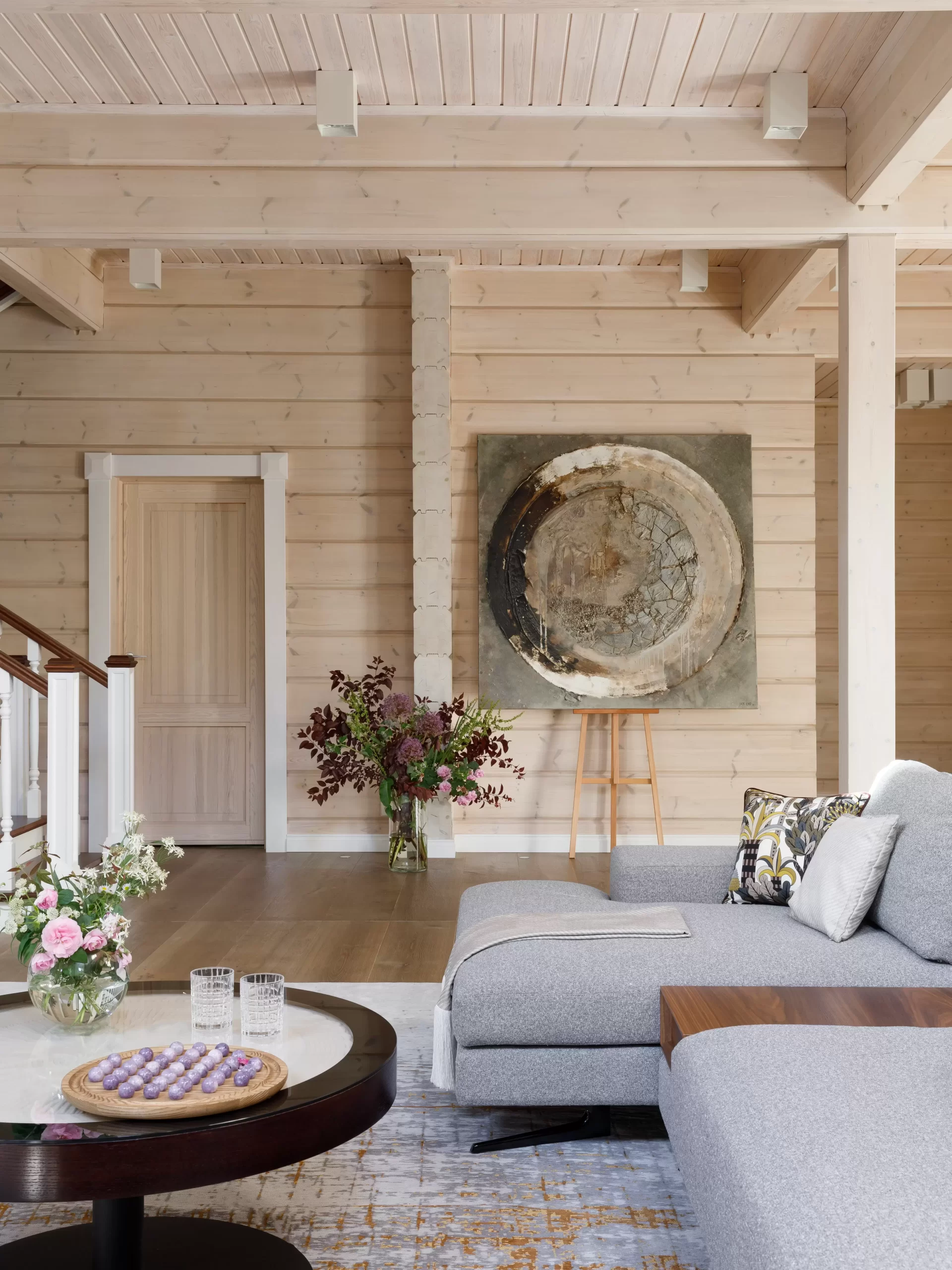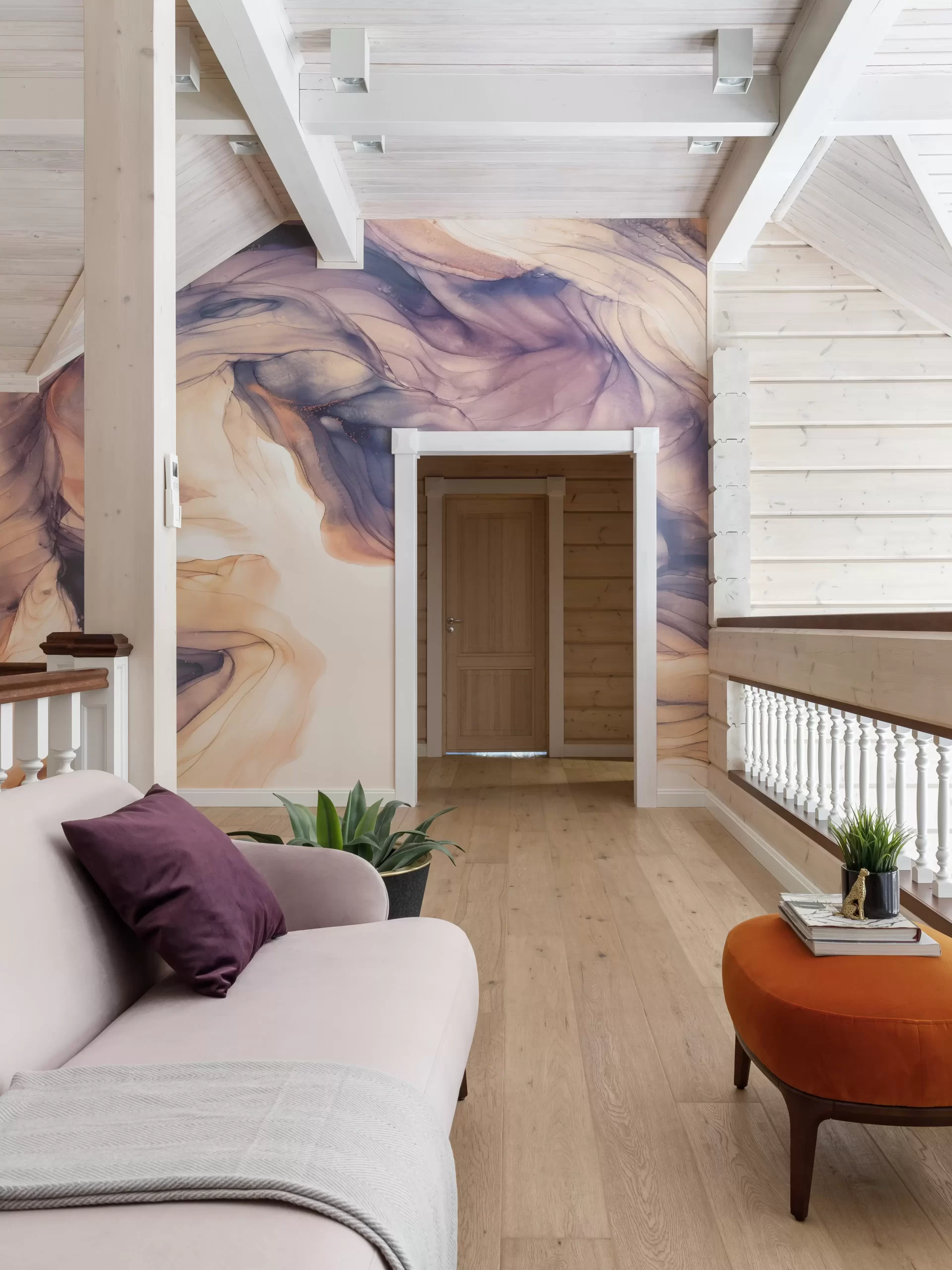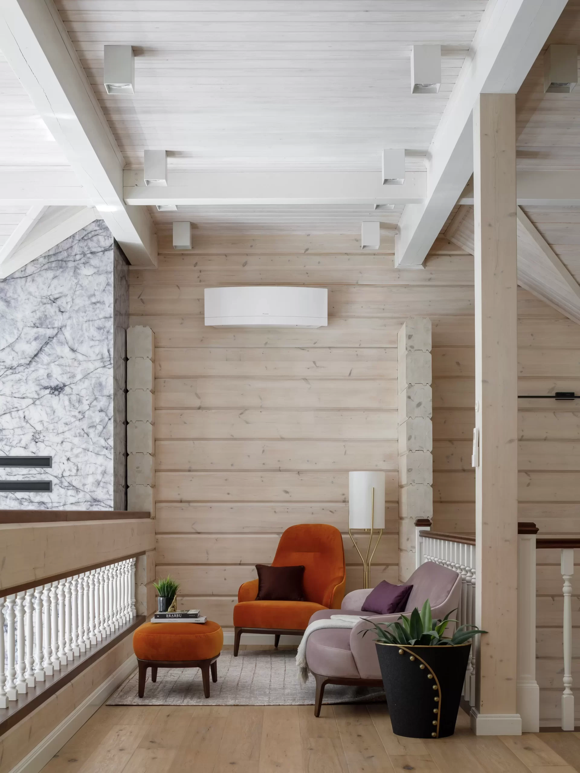Разработать дизайн-проект и выполнить реконструкцию дома для молодой семейной пары, создав современное, функциональное и уютное пространство. Особое внимание уделить организации центральной зоны гостиной с камином, а также подбору мебели, сочетающей комфорт, стиль и практичность для всех помещений.