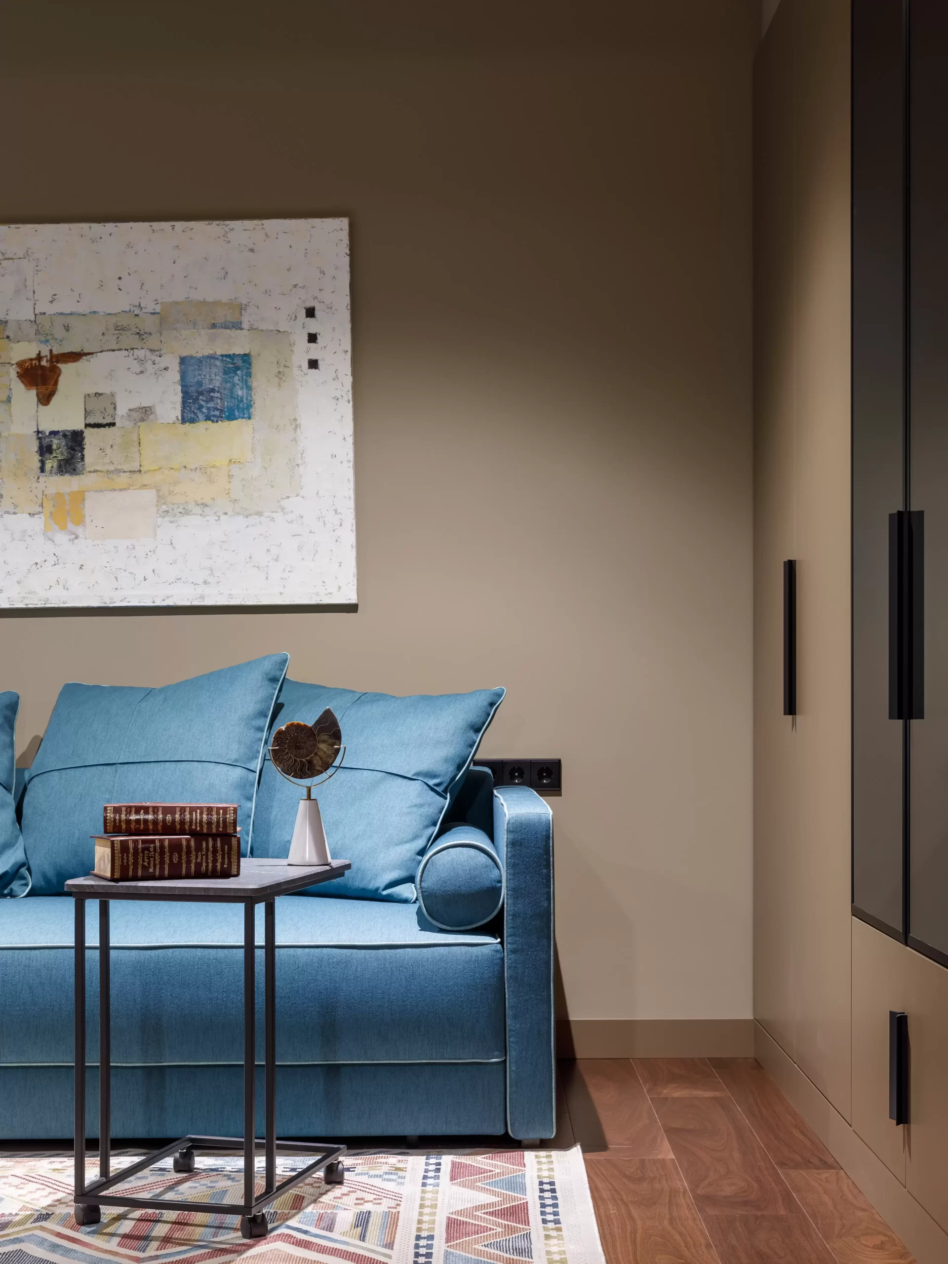 В качестве мебели для сна в детскую был выбран диван, подходящий по дизайну и функционалу — диван-кровать Brabus с пружинным блоком и полноценным спальным местом.