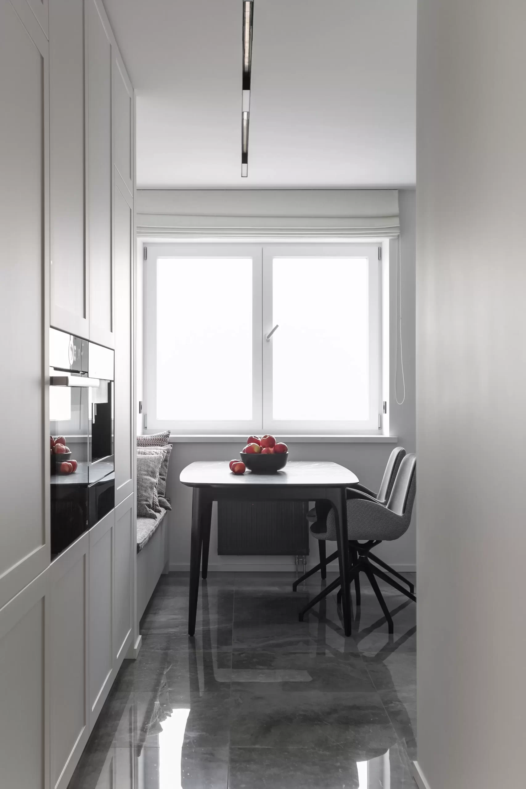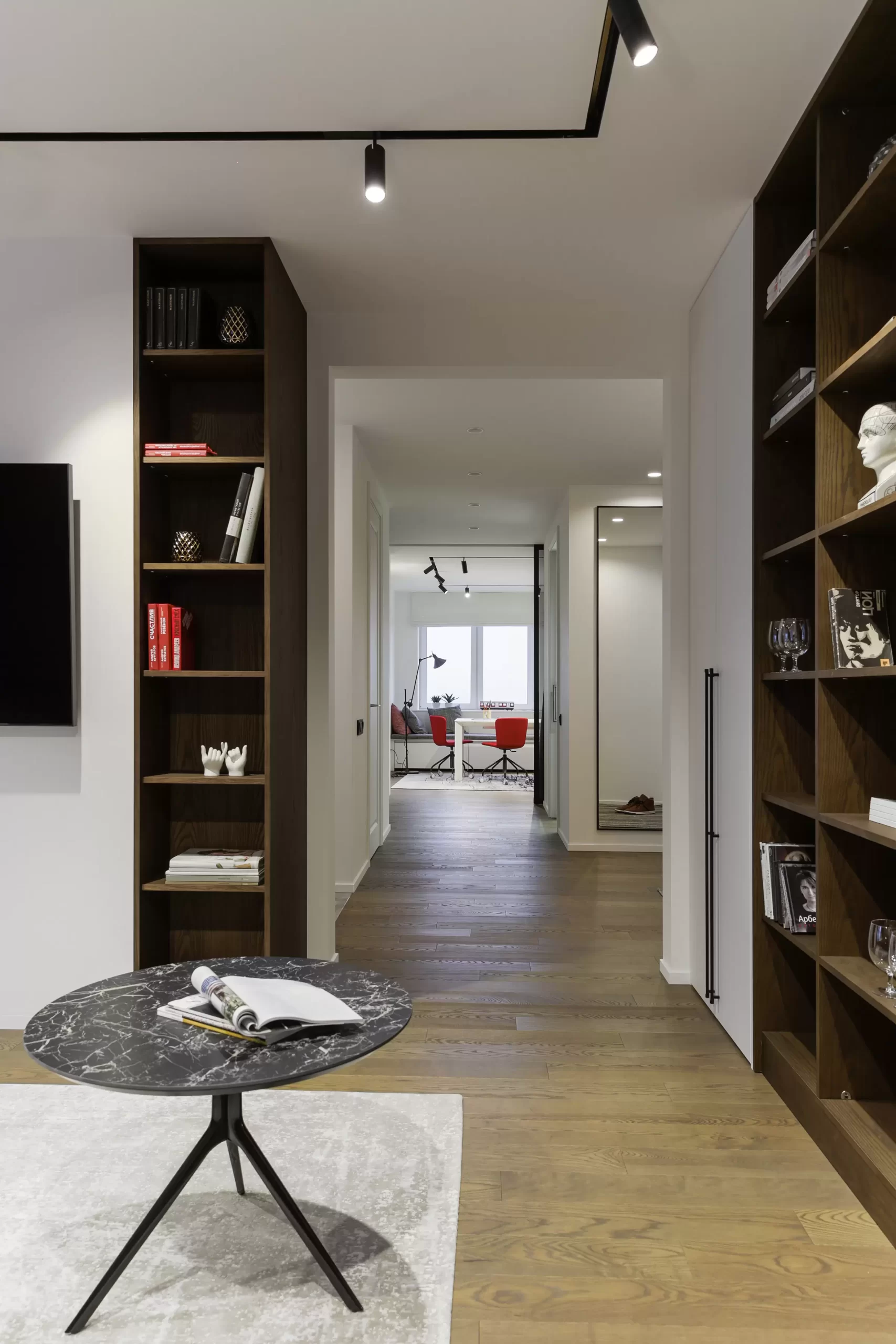 Светлая квартира в центре Москвы, где классические детали с тонкой лепниной гармонично сочетаются с современным интерьером, а мебель Furman с изящными черными ножками добавляет ощущение легкости и воздушности пространства.