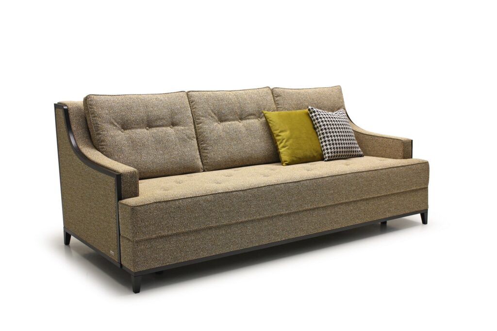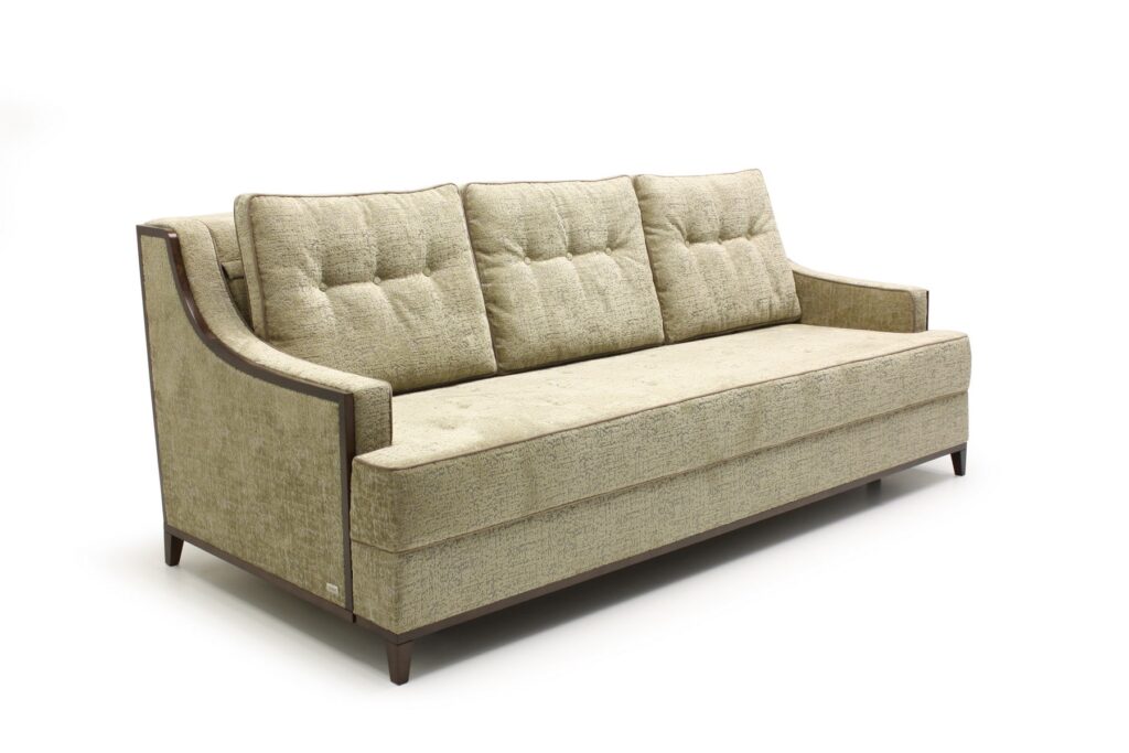 Стильные подлокотники с деревянным обрамлением придают ему особый шарм и престижность. Мебель идеально впишется в любое пространство, будь то гостиная или спальня. Диван Дива с механизмом трансформации «Шагающая еврокнижка» легко перевоплощается из элегантного сидения в уютное спальное место для семьи из двух человек. Si Lounge предлагает на выбор два варианта обивок: ткань и кожа — выберите подходящий вариант, исходя из ваших предпочтений.
