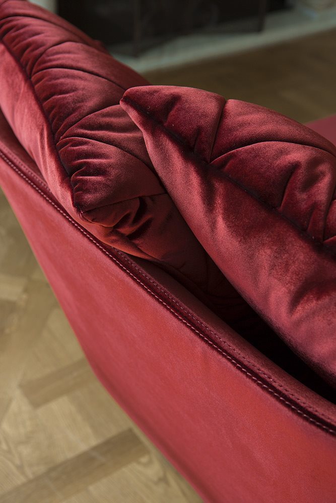 Основной декоративной деталью является обивка, выполняемая из текстиля, гармоничное сочетание фактуры и формы подчеркивают плавные линии.