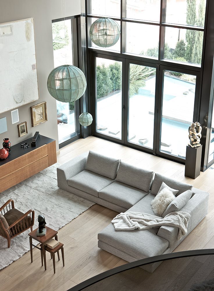 Большой и удобный, с простыми линиями, он идеально впишется в современный интерьер. Несмотря на его внешнюю простоту, он очень функционален. Модульная система позволяет легко собрать нужные элементы и создать уникальные дизайнерские решения с учетом особенностей вашей комнаты.
