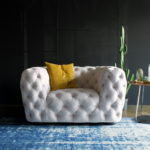 Дизайнерское кресло Ray представляет собой настоящий шедевр. Изделие полностью выполнено в технике капитоне, что делает его не только красивым, но и легким, а воздушности креслу придает отсутствие острых углов. Ray станет украшением любой гостиной, оформленной в стиле арт-деко.