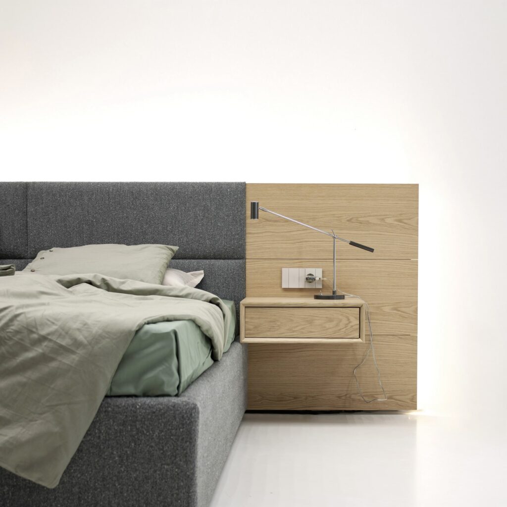 Кровать Frame — инновационный подход к дизайну спального места, объединяющий в себе функциональность и индивидуальный стиль. Frame представляет собой модульную систему с настенным креплением изголовья, позволяющую создавать разнообразные композиции и подстраивать их под любой интерьер.