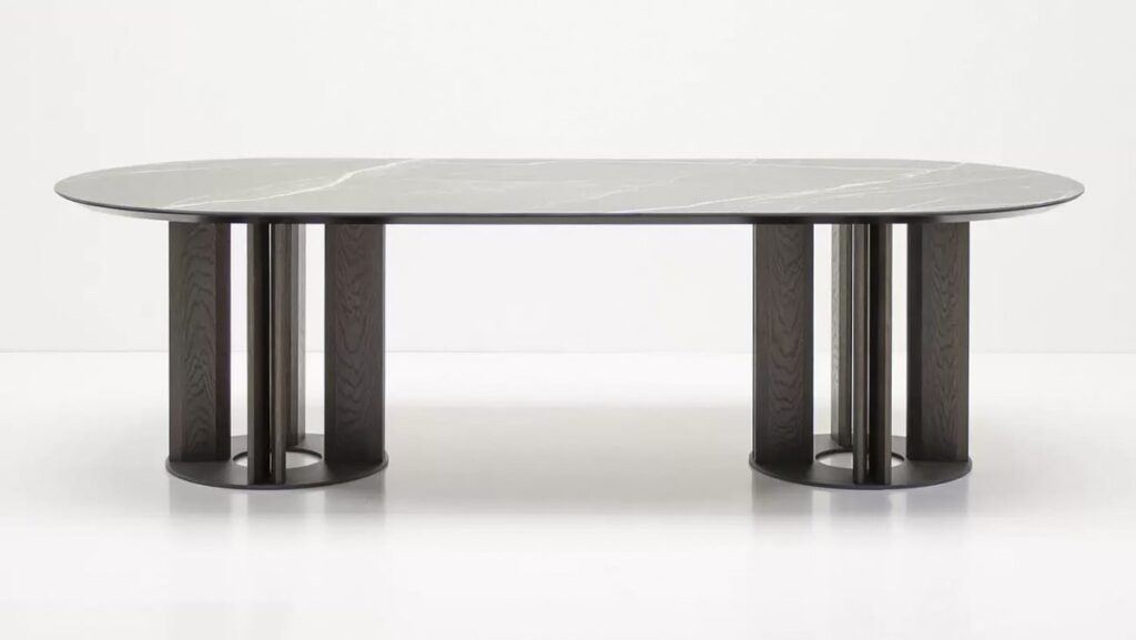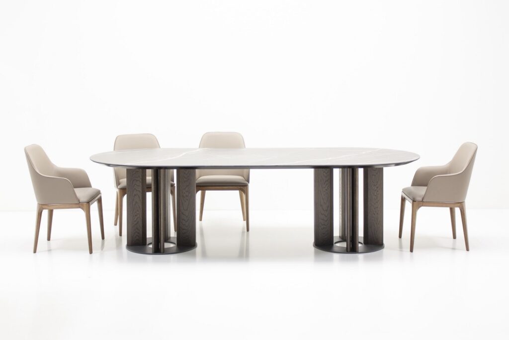 Стол Tondo — это стильное и универсальное решение, которое идеально впишется в любой современный интерьер. Модель доступна в различных размерах: от компактных круглых столов на одной опоре до просторных овальных моделей, способных разместить до 16 человек. Центральное расположение опор обеспечивает удобство и позволяет разместить максимальное количество стульев вокруг стола.