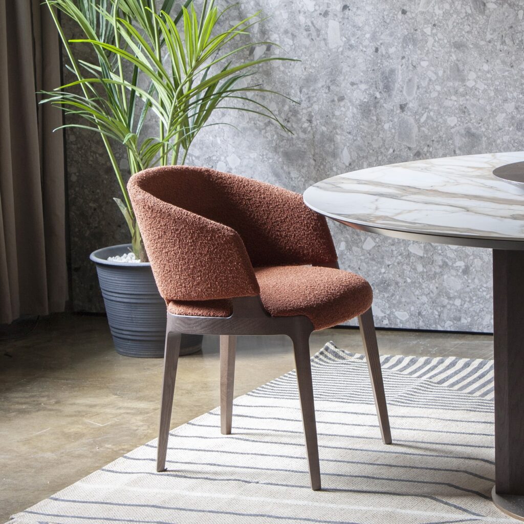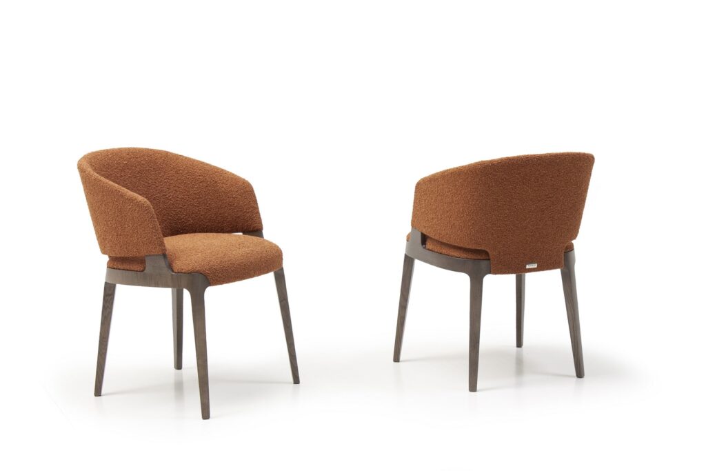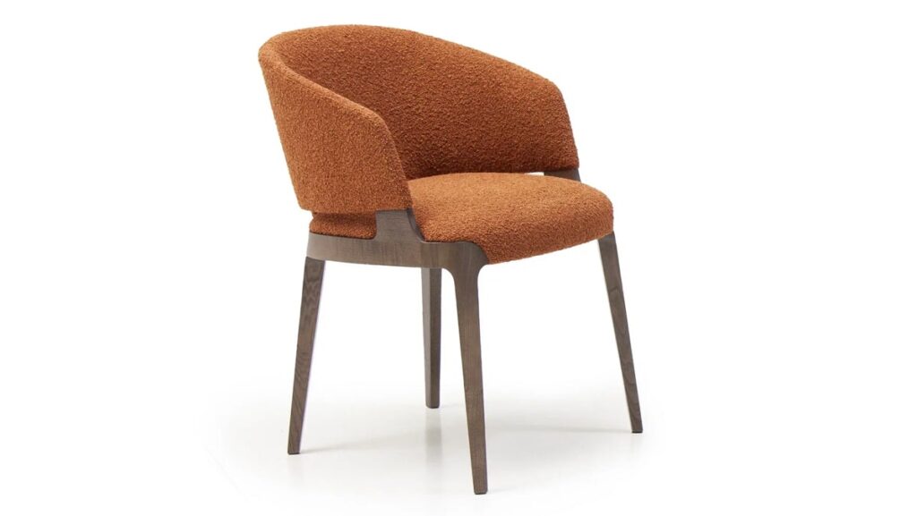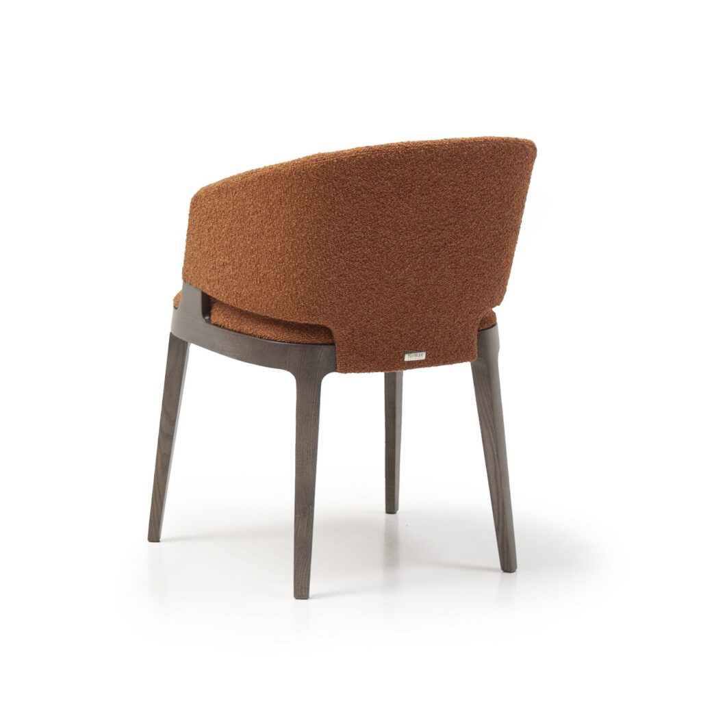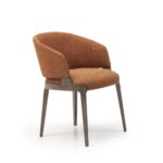 Особая черта — интересный переход подлокотников и сидения в основание. Изящные опоры будто обволакивают изделие, делая его изумительно стильным. Лаконичный стул прекрасно подходит для релаксации, так как он поразительно мягкий за счет упругого пенополиуретана. Можно выбрать любой цвет опор и поэкспериментировать с текстурой обивки, чтобы добавить стулу уникальный образ.