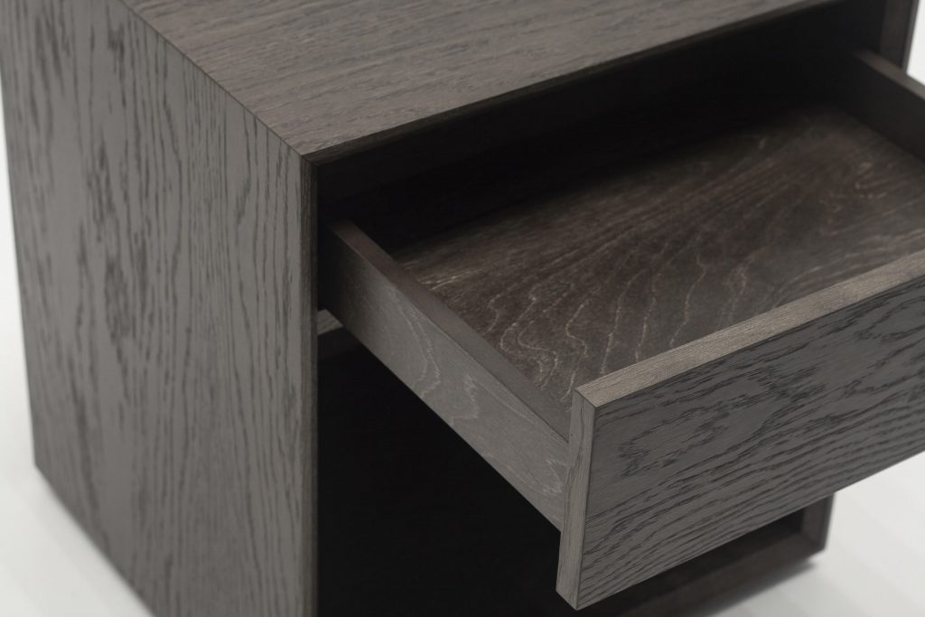 Четкие очертания границ и строгая геометрия отличают мебель серии Frame . Коллекция представлена в двух вариантах – с алюминиевыми опорами и без опор. Детали корпуса из натурального шпона, могут быть окрашены в любой цвет или сохранять естественный рисунок дерева. Характерные особенности заключаются в незаметных с первого взгляда тонких линиях стыка под углом 45°, которые выполнены на всех деталях корпуса . В моделях присутствуют ящики без ручек и ниши, в которые может быть интегрирована LED-подсветка с бесконтактным выключателем. Использование фурнитуры Blum позволяет достичь плавного и бесшумного открывания и закрытия элементов мебели. Одно удовольствие прикасаться к мебели с бархатной текстурой поверхности.