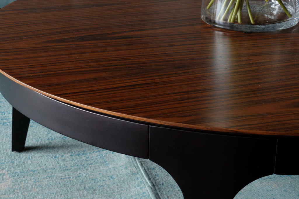 Журнальный столик серии «Play» дополнит интерьер изяществом и красотой плавных линий. Его основание изготавливается из массива натуральной березы и может быть окрашено в любой цвет.Поверхность изготавливается из натурального шпона дуба любого цвета, шпона американского ореха, тополя или тонкого высококачественного керамогранита «Laminam».