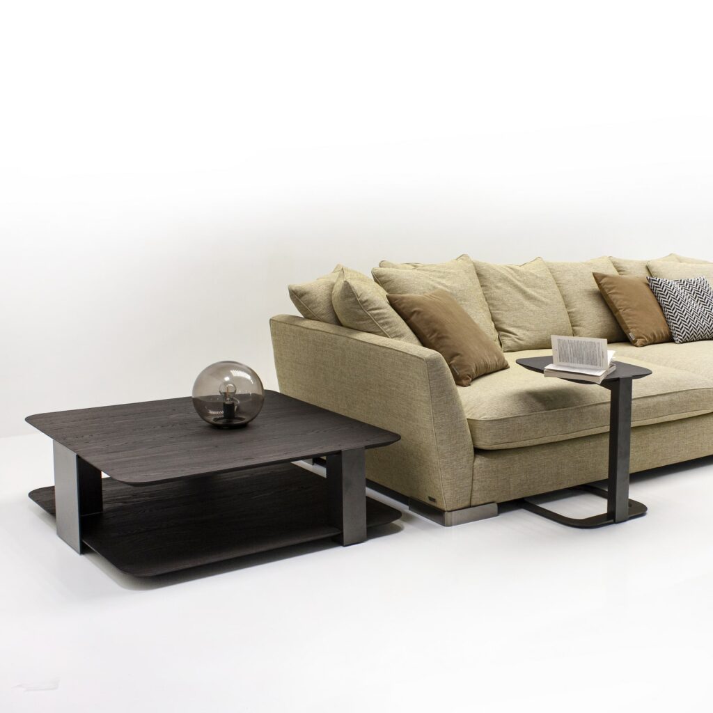 Коллекция журнальных столов Allure воплощает современную элегантность, где строгая геометрия сочетается с визуальной лёгкостью. В её центре — величественный квадратный стол, построенный на игре уровней и текстур.