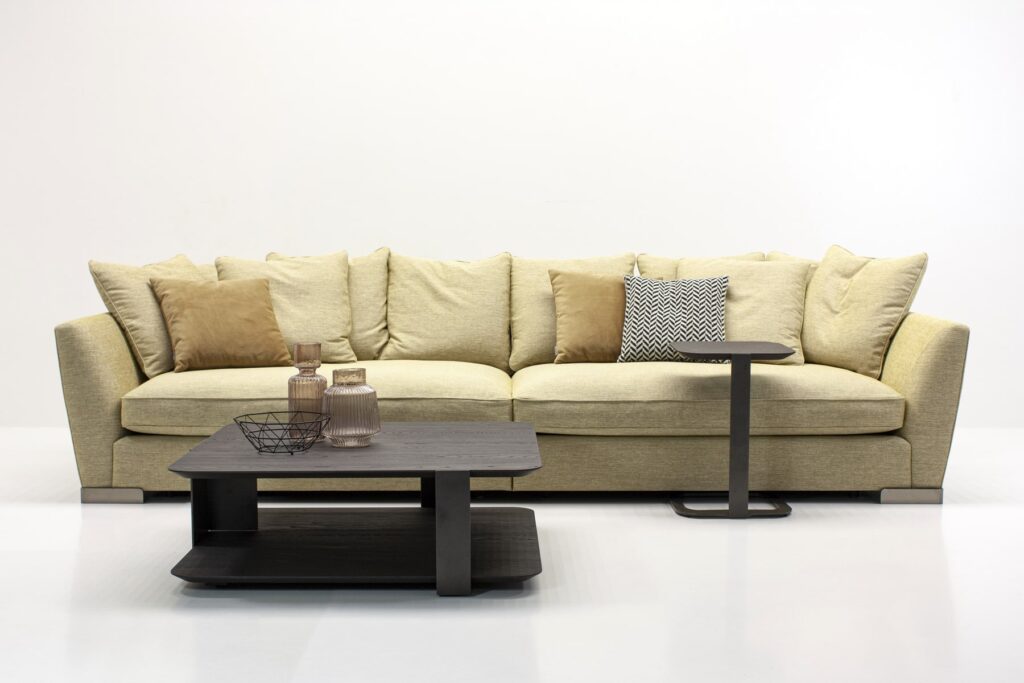 Коллекцию Allure дополняет изящный приставной столик. Его Г-образный силуэт мягко обтекает мебель, предлагая удобную поверхность под рукой именно там, где это необходимо, не загромождая пространство.