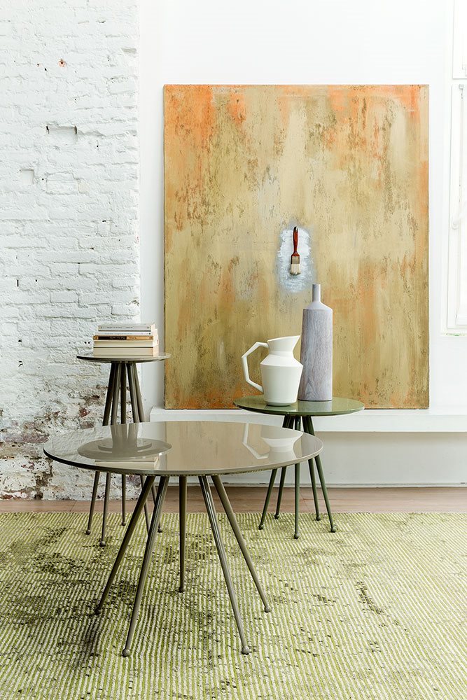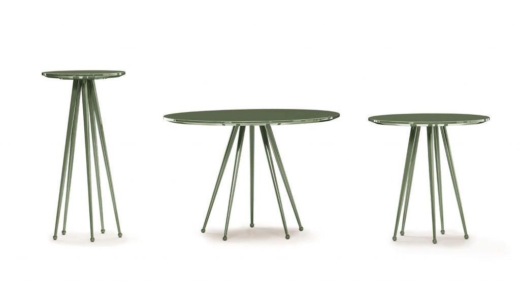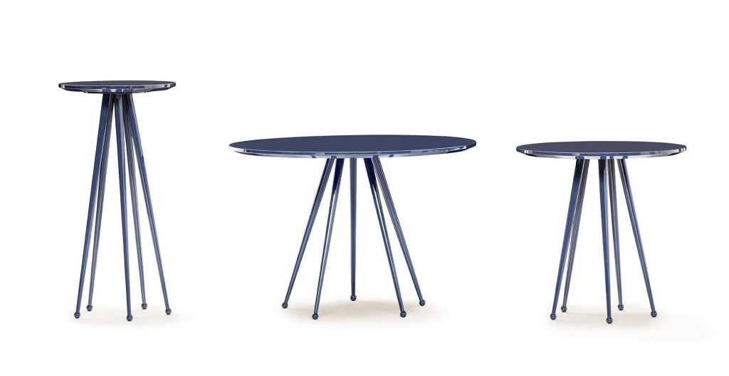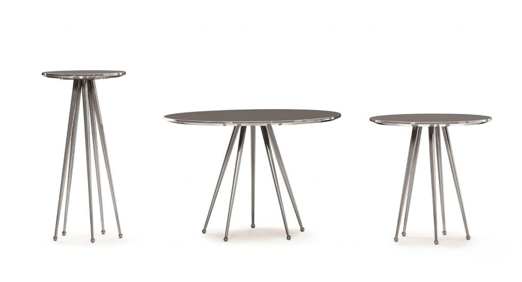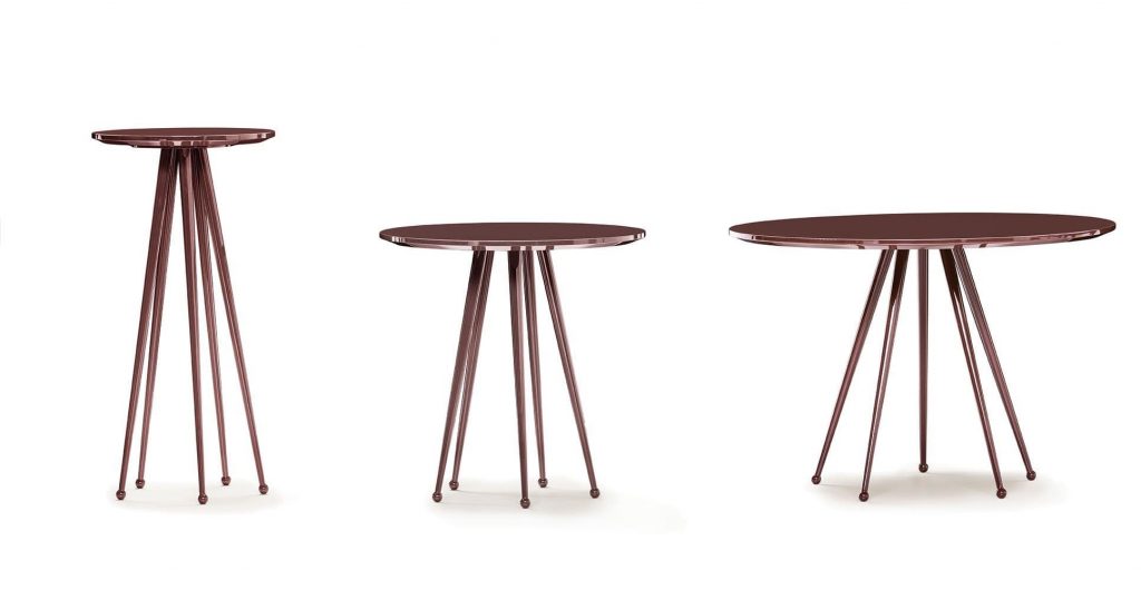 Маленькие столики Jagger с 5 металлическими ногами, которые смотрятся легко, но очень устойчивы. Верх стола лакированный.