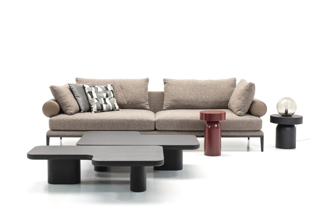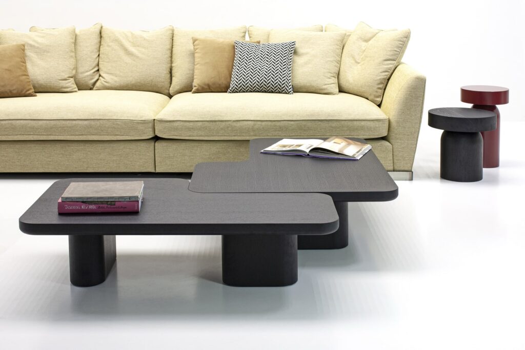 Главная особенность столика — взаимозаменяемость: переставьте элементы, чтобы создать свежий, динамичный вид, сохраняя при этом идеальную гармонию. Компактные журнальные столики с цилиндрической основой и матовой поверхностью прекрасно сочетаются с основной композицией. Их можно использовать как вместе, так и отдельно, чтобы придать выразительный акцент интерьерам гостиной.